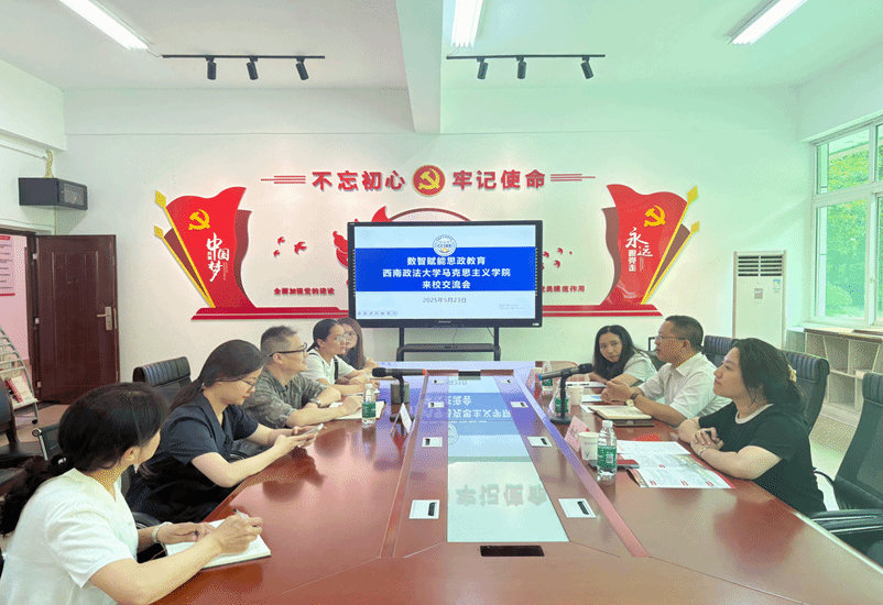 2025年5月23日,西南政法大学马克思主义学院副书记、纪委书记马丹青,副院长周发财及王勤文老师来校开展“数智赋能思政教育”、“访企拓岗”促就业交流活动。学院院长助理尹丽、李天余、向婷等教师代表参加交流会议,副书记、副院长李亚军主持会议。
