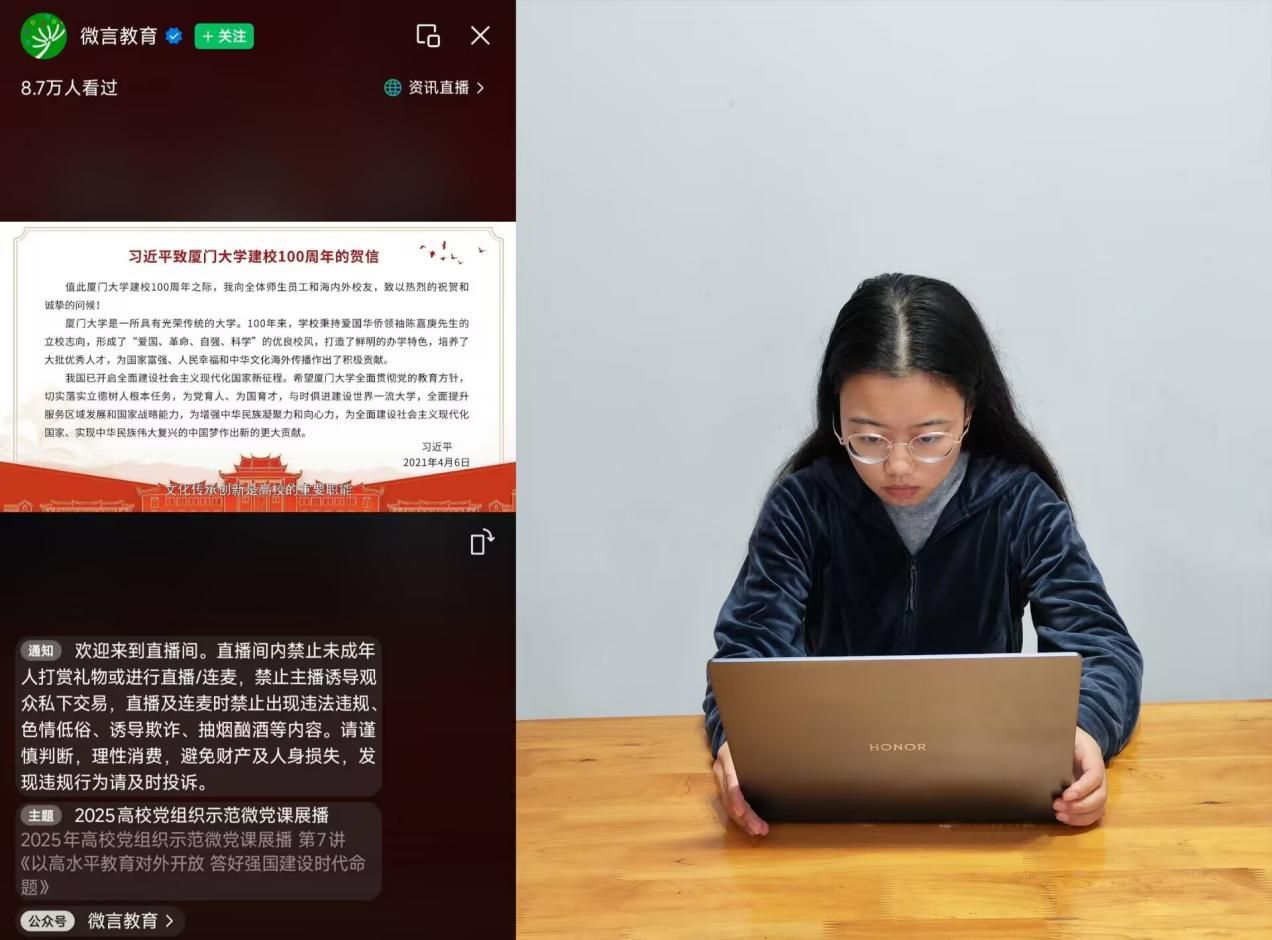 为进一步提升党员党性修养,加强党员思想政治教育,11月7日,马克思主义学院复兴党支部全体成员观看了2025年高校党组织示范微党课《以高水平教育对外开放 答好强国建设时代命题》。