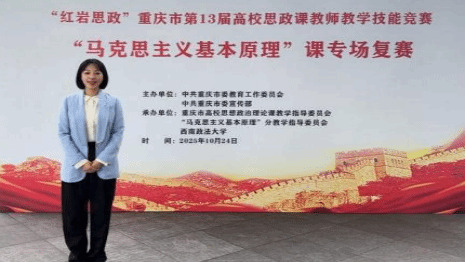 10月17日至26日,“红岩思政”重庆市第十三届高校思政课教师教学技能竞赛复赛顺利举行。我校马克思主义学院侯典芬、尹艳、王开敬、方圆、李天余、欧阳骏六位教师代表学校参赛。他们凭借扎实的理论素养与生动的课堂呈现,顺利完成了比赛任务,全面展现了我校思政课教师的专业功底与教学魅力。