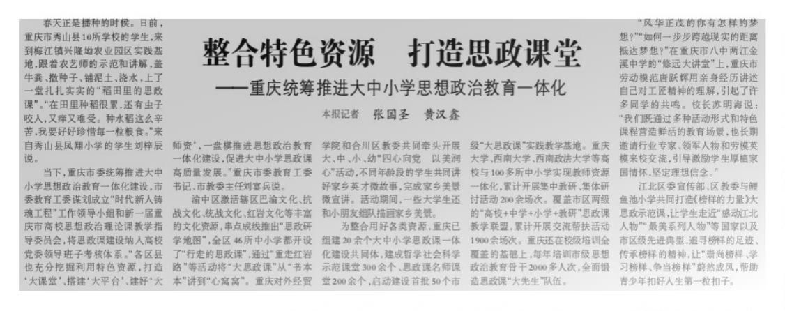 光明日报:《整合特色资源 打造思政课堂 重庆统筹推进大中小学思想政治教育一体化》.jpg