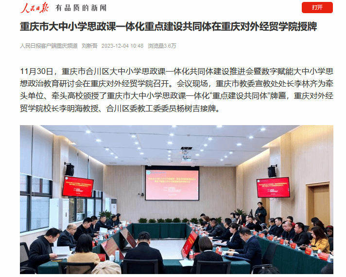 人民日报:《重庆市大中小学思政课一体化重点建设共同体在重庆对外经贸学院授牌》